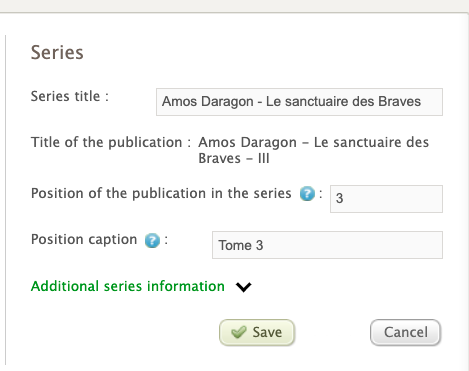 Go to the Metadata section > Collections and series