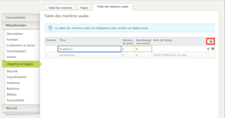- Entrez l'intitulé de chaque section ou chapitre, et le numéro de la piste correspondante