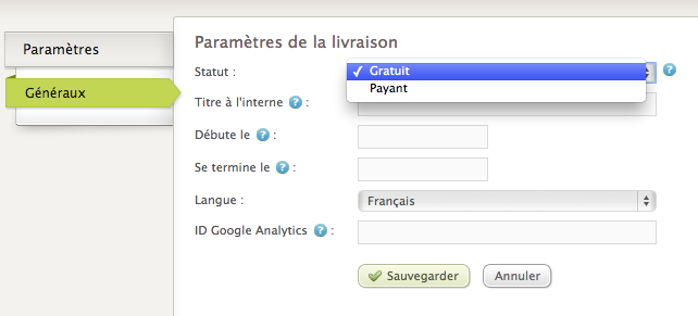 - Langue: langue du courriel de livraison.