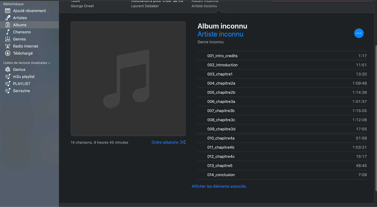 Un livre audio dont les pistes n’ont pas été documentées se présente comme suit dans l’aperçu global des livres audio: