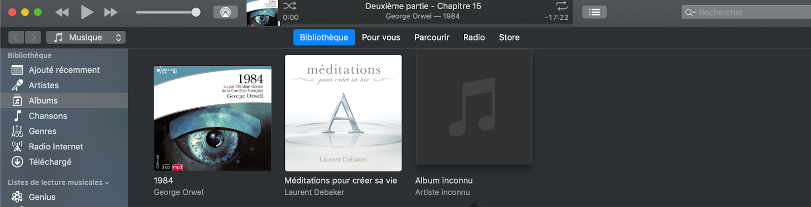 Si les métadonnées des pistes audio ne sont pas documentées, l'application de lecture ne peut pas afficher les informations du livre au lecteur, ce qui donnera ce résultat:
